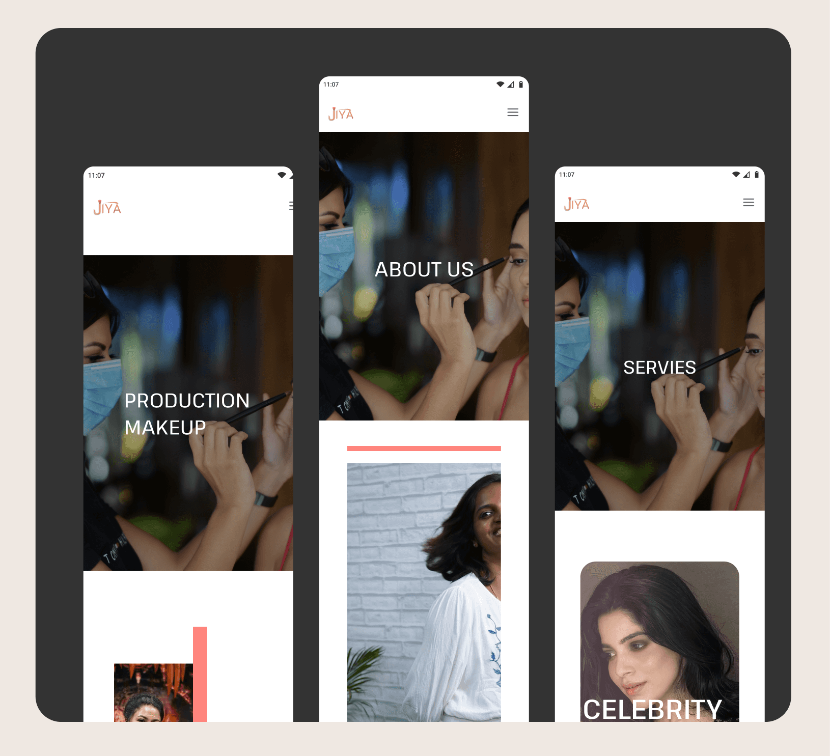 As our client idea is to reach more to celebrities, where they wanted get into more movie production side, as we had a idea to give more rich feel to website, we searched more about the makeup artist and how they get more opportunities, The website more strong layout and beautiful color